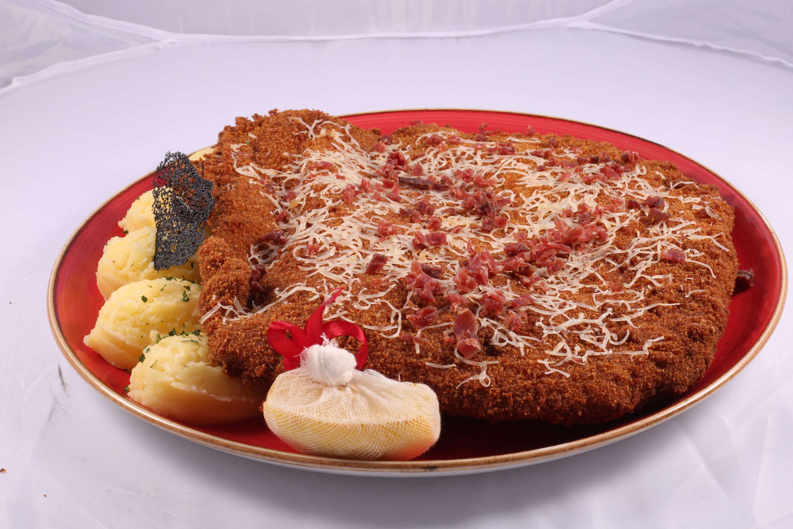 Sastav: Od junećeg mesa, pršuta sa rendanim tvrdim sirom, granirano krompir pireom.