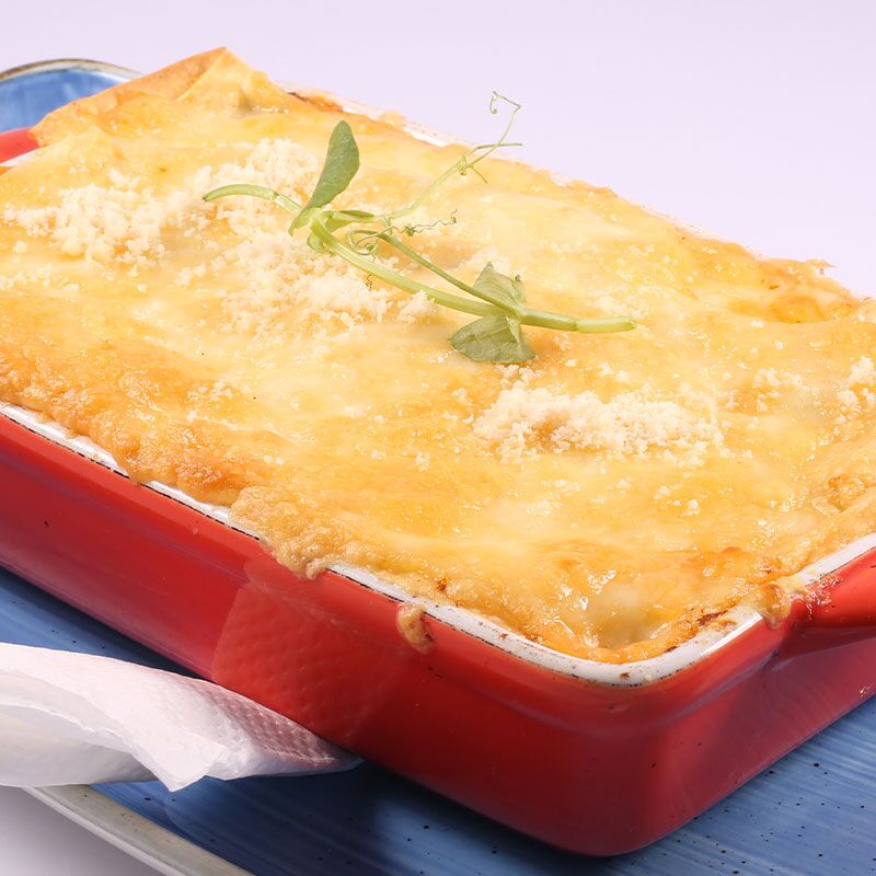 Sastav: Ragu od piletine bez paradajza, sir, parmezan, bešamel.