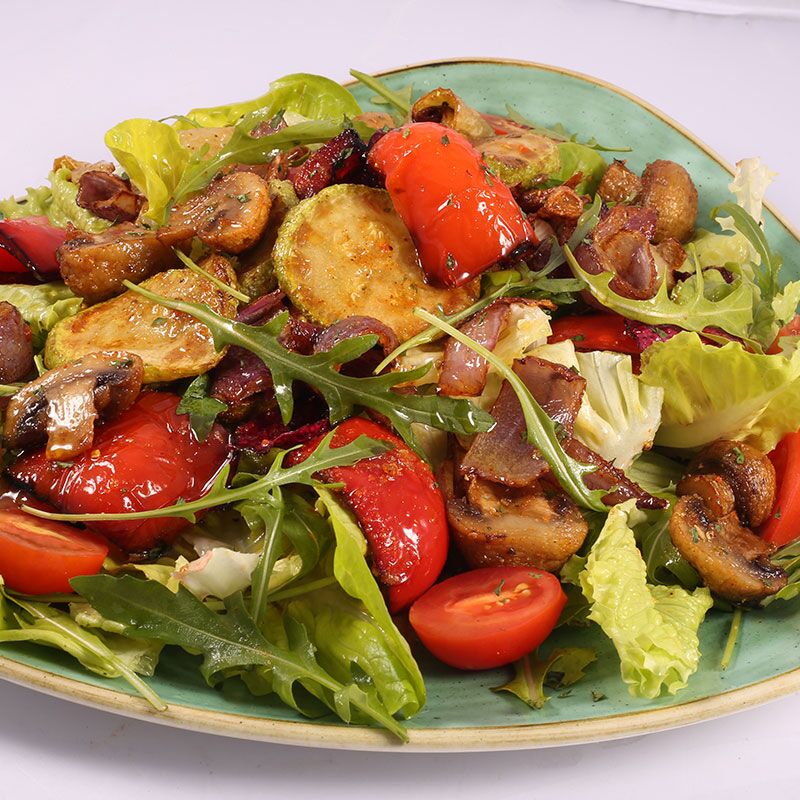 Sastav: Povrće obrađeno u maslinovom ulju, mešano sa svežim salatama i tost.