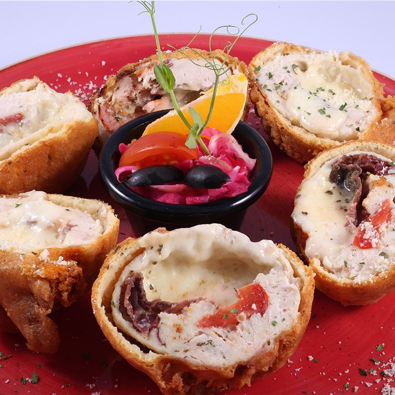 Sastav: Tri komada, punjeno, sirom, svežim paradajzom, pršutom i pohovano u pivnskom testu.