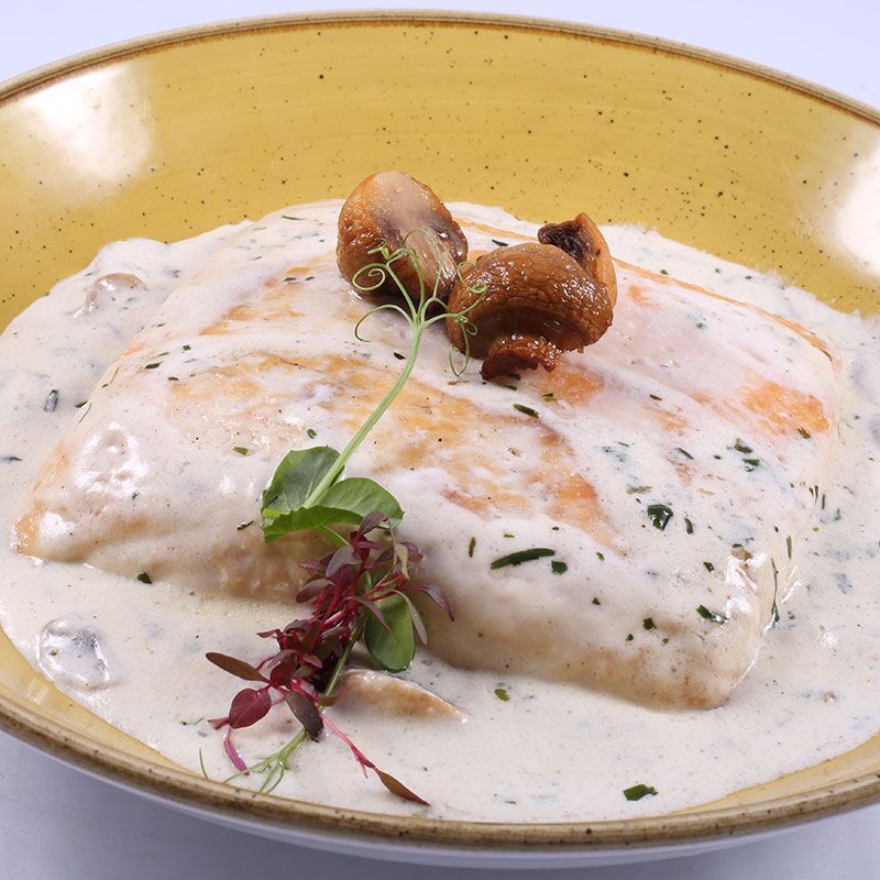 Piletina na rimski način je obrok koji se priprema od filea od pilećeg belog mesa. File se puni sa pršutom i tvrdim sirom, uz preliv od šampinjona. Odaberite veličinu porcije, količinu i dodajte u korpu.